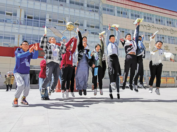 圖為結束藏語文考試的考生慶祝高考結束。來源:西藏日報 攝影:王莉