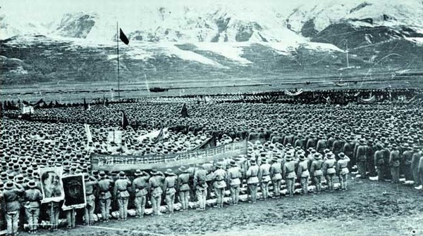 圖為修建進藏公路的部隊進行動員大會。圖片來源:人民網