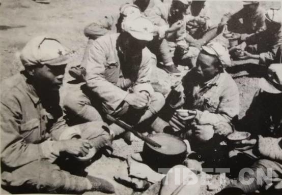 圖為官兵們依靠代食粉充饑。圖片來源:紀錄片《口述西藏》