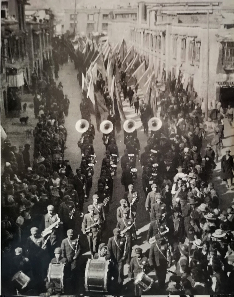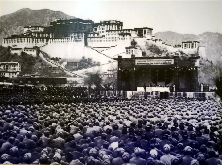 圖為1954年12月25日,在拉薩舉行的慶祝康藏公路(今川藏公路)、青藏公路通車典禮大會。翻拍:李元梅