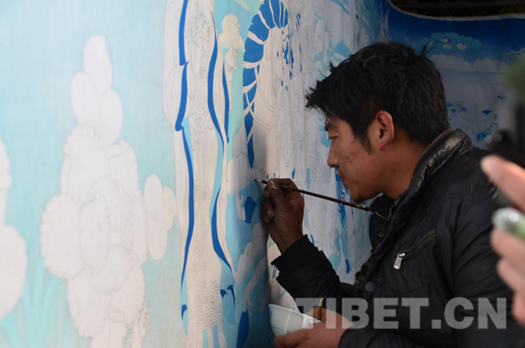 中國西藏網訊 在西藏自治區昌都市江達縣卡貢鄉的洛堆村,沿公路轉入上山的土路,經過一路顛簸后,來到半山腰處的拉巴倉勉薩派唐卡第八代傳承人西熱秋久家中,這處位于半山腰的房子既是西熱秋久的家,也是一處唐卡繪制農牧民專業合作社。