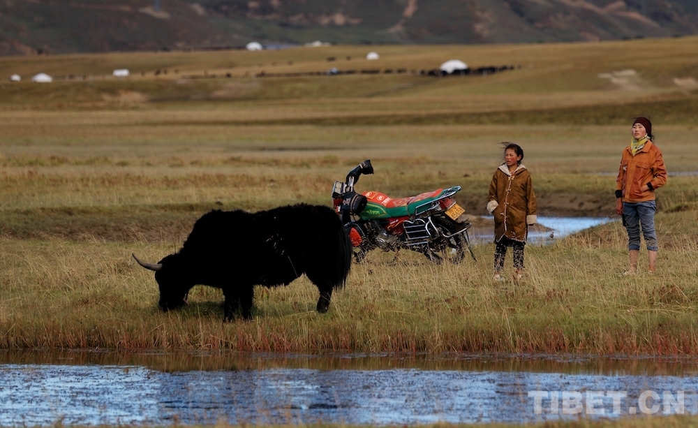 10月中旬,地處川西高原的四川省甘孜藏族自治州理塘縣高寒牧區,牧場上的草已變黃,也是牦牛最肥壯的季節。圖為秋草黃牦牛肥景致