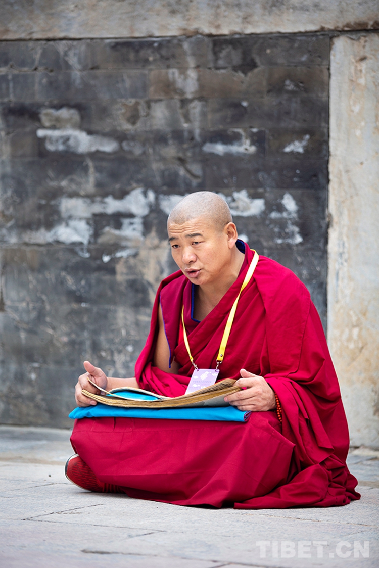 圖為即將參加2020年藏傳佛教第十六屆“拓然巴”高級學銜畢業考試辯經考試的學僧專注誦經 攝影:許娜