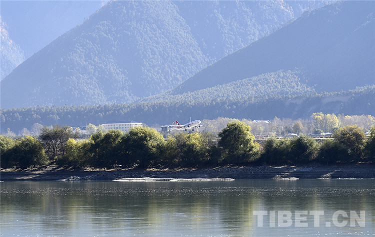 圖為一架飛機從西藏自治區林芝市米林機場起飛 攝影:王媛媛