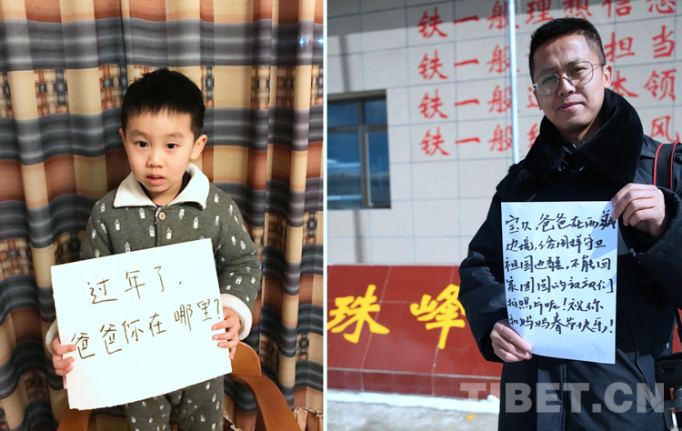 這是一張拼版照片,孩子名叫王躍民,已經(jīng)快六歲了,還沒和爸爸一起過過年。今年他和媽媽、外公外婆在成都過年。爸爸王卿龍是西藏日喀則邊境管理支隊薩嘎邊境管理大隊的教導(dǎo)員,長年工作在海拔4600以上的邊境一線,今年春節(jié)他主動把回家過年的機會讓給了其他戰(zhàn)友,自己又一次選擇堅守崗位!