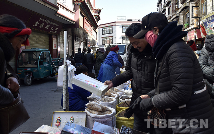 來自西藏自治區各地的農牧民,或帶著手藝,或帶著家鄉的農特產品,走街串巷、擺攤設點,售賣年貨。他們憑借著地道正宗的產品,收益頗豐。年貨市場上的銷售,將是他們一年中重要的增收途徑之一。