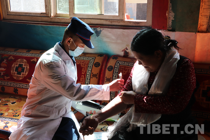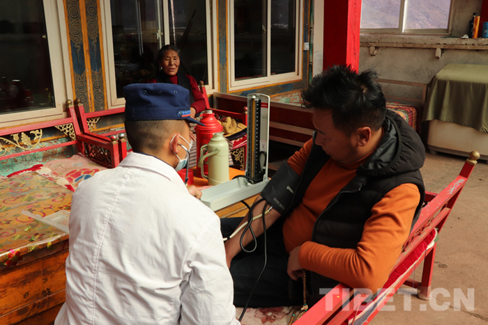 圖為卡若區森林消防中隊衛生員了解困難群眾身體狀況