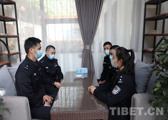 在半盞時光活動室,民警王美辰、徐春雨、扎西旺姆向參觀人員介紹了西藏歷史、藏族習俗禁忌以及阿里風土人情。參觀人員還主動向扎西旺姆學習日常藏語。“突及其,格啦(意為謝謝,老師)”任會昭帶著廣東口音說道。一番表達,拉近了彼此間的距離。