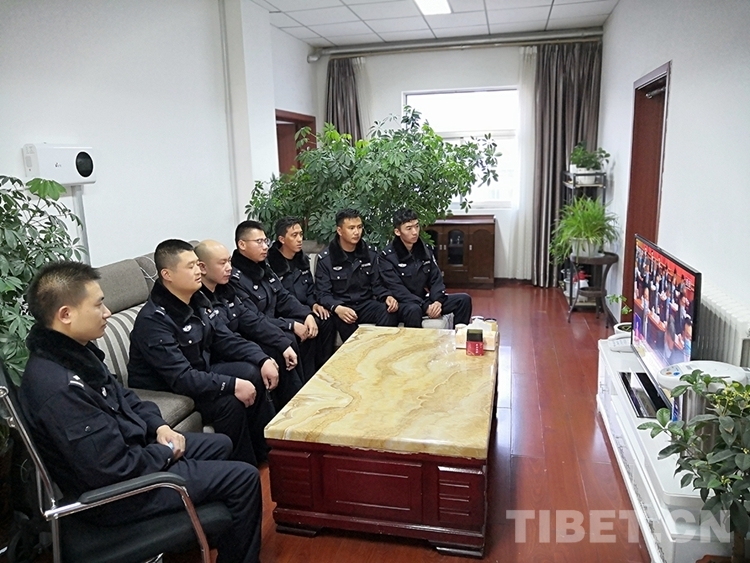 圖為阿里邊境管理支隊(duì)普蘭大隊(duì)組織收看開(kāi)幕會(huì)