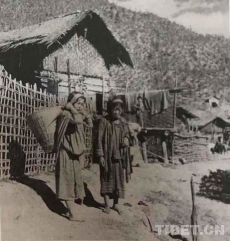 歷史上,墨脫群眾赤腳走在村內羊腸小道上的情景。