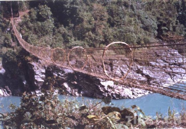 墨脫群眾渡江通行的主要交通之一“藤網橋”。