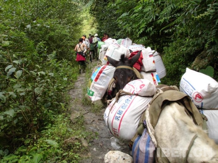 墨脫公路建成通車前,活躍在墨脫公路上的騾馬運輸隊