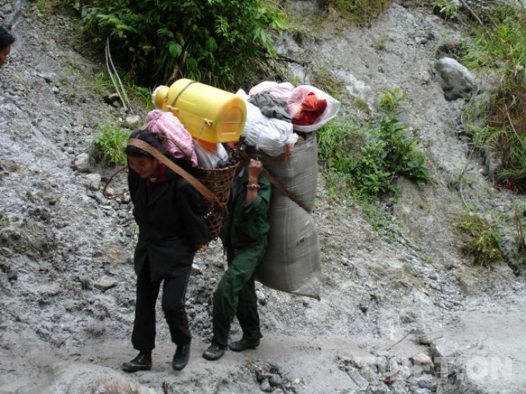 墨脫公路因其通行條件差,“人拉車”成為一種常態。