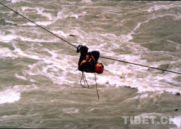 本世紀初,墨脫群眾仍使用溜索通過雅江的方式出行。