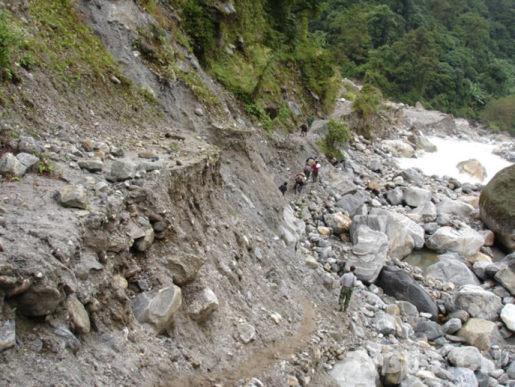 2005年6月墨脫公路段出現自然塌方損毀嚴重。