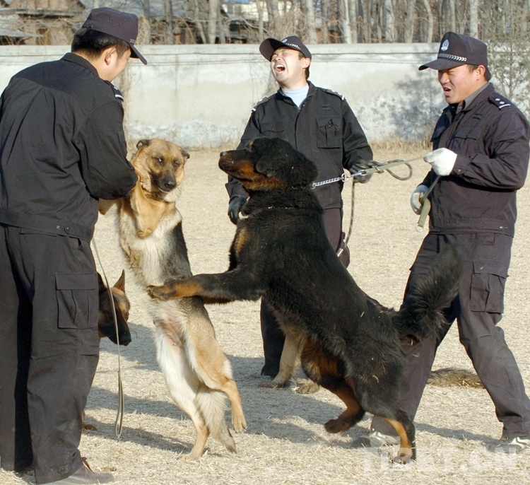 2005年,公安部對外宣布,藏獒將成為警方備用犬種,這將改變進口犬種一統天下的局面。當時,北京警方已引進了4只藏獒進行研究、訓練。我特意來到北京市公安局警犬訓練基地采訪,并目睹了藏獒在這里的訓練情況。