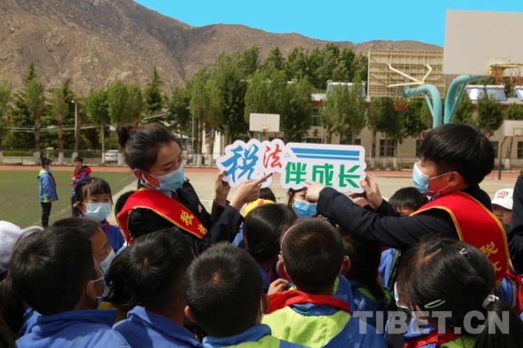 “稅官們用淺顯易懂的藏漢雙語向同學們講解稅收的起源等稅收知識,不僅豐富了孩子們的課外知識,還能幫助他們從小增強納稅意識。剛才還有學生跑來告訴我,將來也要像叔叔們一樣,為祖國收稅!”年級主任巴桑笑著告訴前來為孩子上課的稅務干部們。
