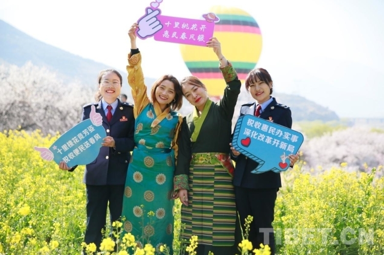 桃花濃艷,云霞爛漫。國家稅務總局林芝市稅務局以林芝市第十九屆桃花旅游文化節開幕為契機,安排稅收業務骨干攜手稅收宣傳志愿者借力“桃花節”扮靚稅收宣傳風景線。將本地旅游特色與西藏稅務系統正在開展的黨史學習教育等相結合,推出的標語打卡、童心繪黨徽、唱紅歌心向黨等新穎宣傳活動,讓大家在游玩中重溫了黨史。