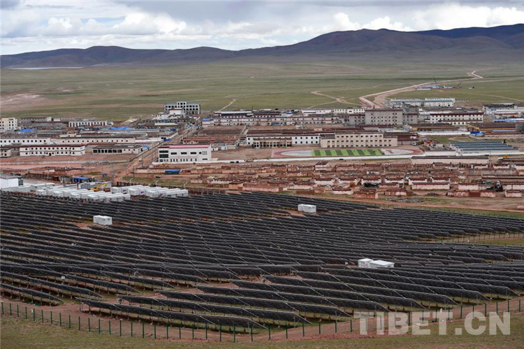 這是雙湖縣城新貌。前景是光伏電站成片的發電板(唐召明2017年7月25日攝)