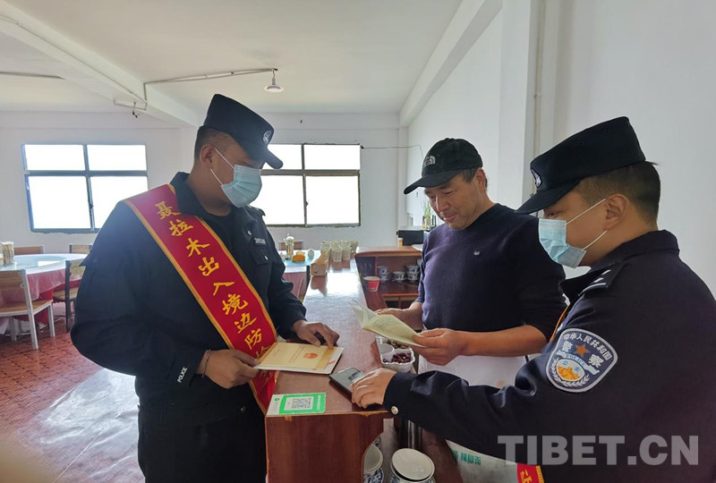 圖為西藏聶拉木出入境邊防檢查站民警為轄區餐館老板宣講法律知識