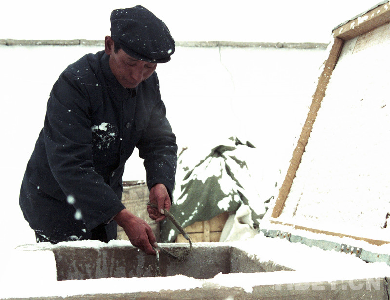 這是公覺扎朗在文部辦事處(現改為尼瑪縣)住地冒雪給家里打井水(唐召明1989年攝)