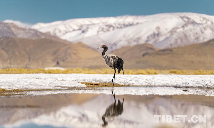 圖為得益于西藏生態環境越來越好,黑頸鶴無憂無慮地徜徉在羌塘草原上,和諧而優雅 攝影:趙耀
