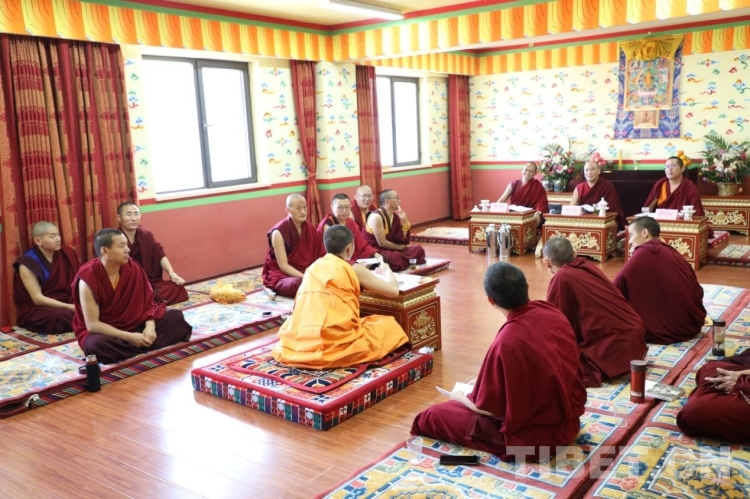 中國西藏網訊 5月21日,2021年藏傳佛教第十七屆“拓然巴”高級學銜論文答辯在中國藏語系高級佛學院陽光樓內進行。來自藏傳佛教格魯派、薩迦派、覺囊派的33名學員先后分別在各自教派的考場內進行了論文答辯。(中國西藏網 記者/龍真多吉 陳浩力)