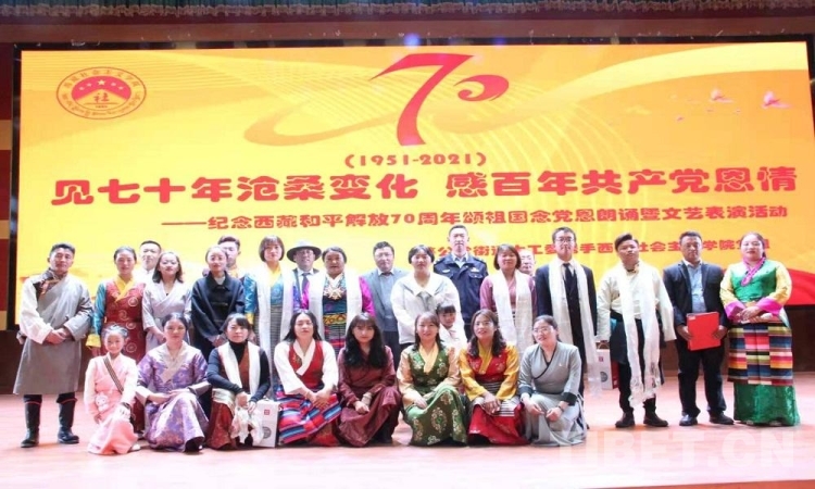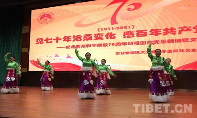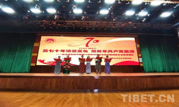 5月23日是西藏和平解放70 周年紀(jì)念日。23日上午,由西藏自治區(qū)拉薩市蔡公堂街道和西藏社會(huì)主義學(xué)院共同舉辦的紀(jì)念西藏和平解放70周年頌祖國、念黨恩朗誦暨文藝表演活動(dòng)舉行。現(xiàn)場鮮花嬌艷,燈光炫目,旋律悠揚(yáng),歌聲嘹亮。