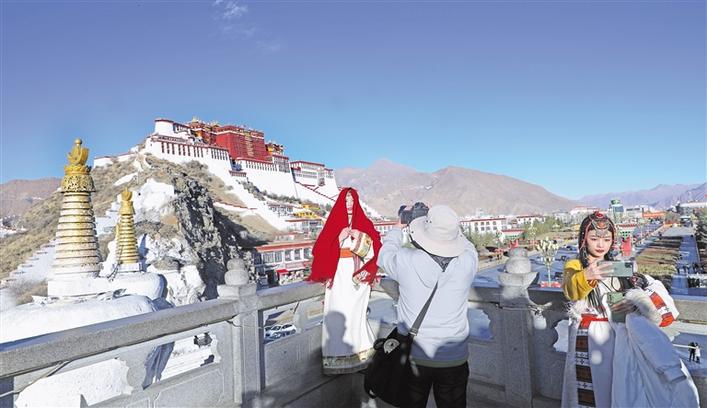 圖為游客在布達拉宮前拍照留念。記者 格桑倫珠 攝 圖片來源:西藏日報