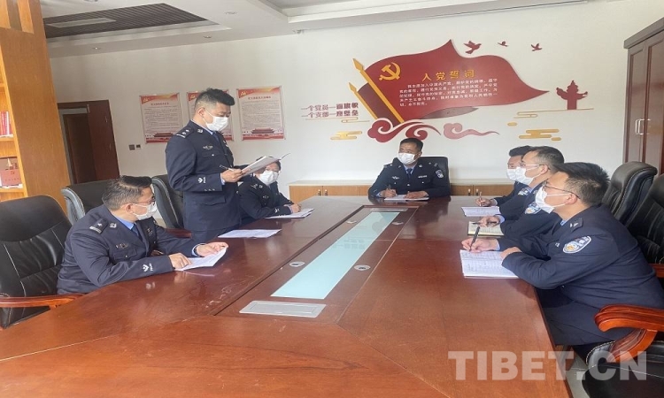 圖為拉薩邊檢站執勤三隊民警集體學習