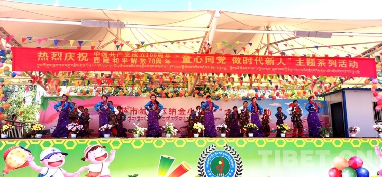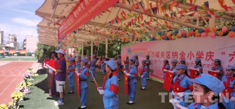 圖為西藏自治區(qū)拉薩市城關(guān)區(qū)納金小學(xué)“童心向黨、做時代新人”六一兒童節(jié)活動現(xiàn)場