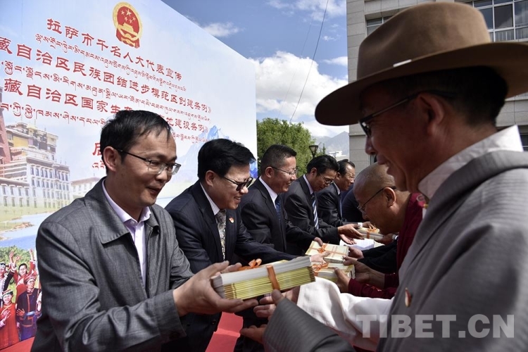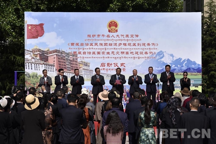 中國西藏網訊 6月9日上午,拉薩市千名人大代表(包括自治區、市、縣、鄉四級人大代表)宣傳《西藏自治區民族團結進步模范區創建條例》和《西藏自治區國家生態文明高地建設條例》(以下簡稱兩個《條例》)工作正式啟動。