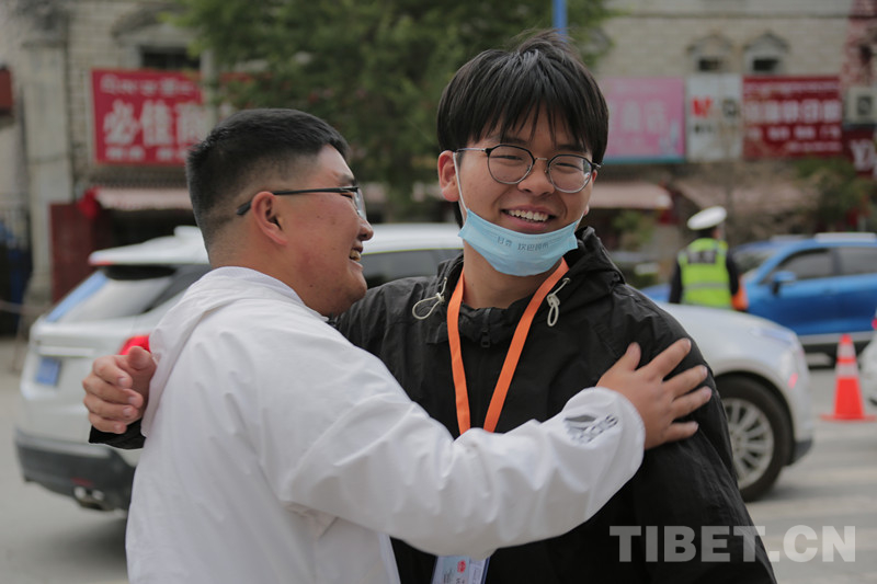 西藏軍區拉薩八一學校的成尚勇老師在高考的幾天里一直在“陪考”,考試結束后,他和自己的學生一一擁抱告別,滿眼不舍地送自己的學生一個個離開。他說,“我們原地返回,他們展翅高飛。陪了他們三年,以后就沒辦法繼續陪伴他們成長,心里會有一些不舍。”