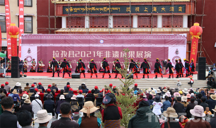 此次活動主要分為展演和展示兩大部分。非物質文化遺產展演有來自拉孜縣非遺歌舞(說唱)拉孜折嘎、吉如諧欽、柳寧諧、芒普鄉孔絲、拉孜堆諧等11個具有代表性的拉孜非物質文化遺產展演,給現場觀眾呈現了一場文化盛宴。多姿多彩的節目不時引起臺下陣陣掌聲,讓觀眾們感受到了非物質文化遺產帶來的深厚魅力。