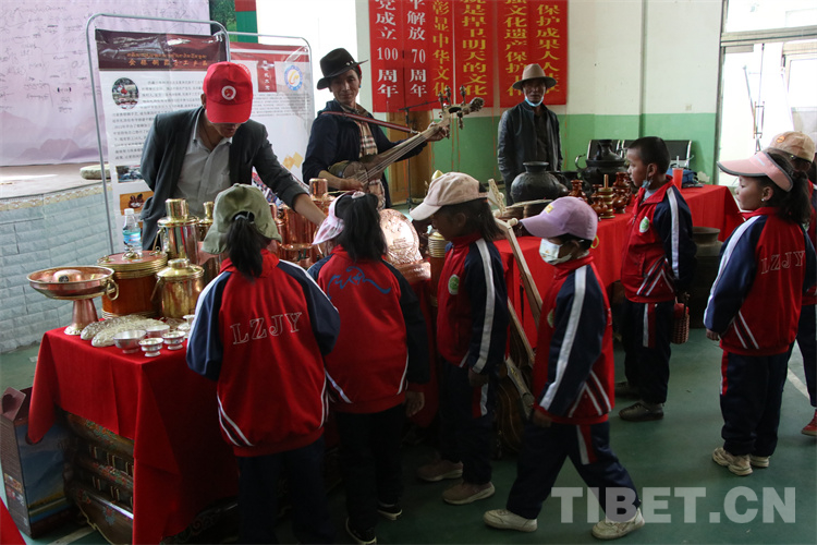 圖為拉孜縣完小學生參觀傳統手工藝產品