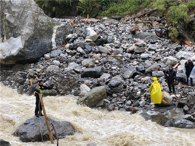 “救命,救命,求求你們救救我們!”,在河水不斷撞擊石頭發出雷鳴般的聲音中,河對岸17名群眾的呼救聲顯得如此微弱。民警竇國兵于心不忍,想要下水到對岸救助17名被困群眾,被扎西旺久一把拉住,“這水太大了,你還沒到對岸就會沒命的,我們先穩住他們的情緒,回去請求增援吧。”