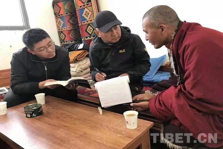 圖為西藏自治區藏語委辦(編譯局)黨組成員、副主任(副局長)加永曲加和同事調研新詞術語相關情況