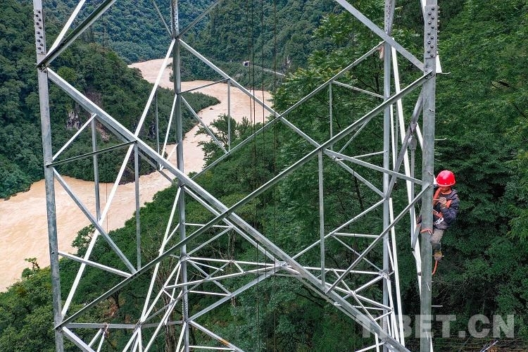 圖為西藏自治區林芝市通麥110KV輸變電工程149號電力鐵塔建設施工現場 攝影:趙耀