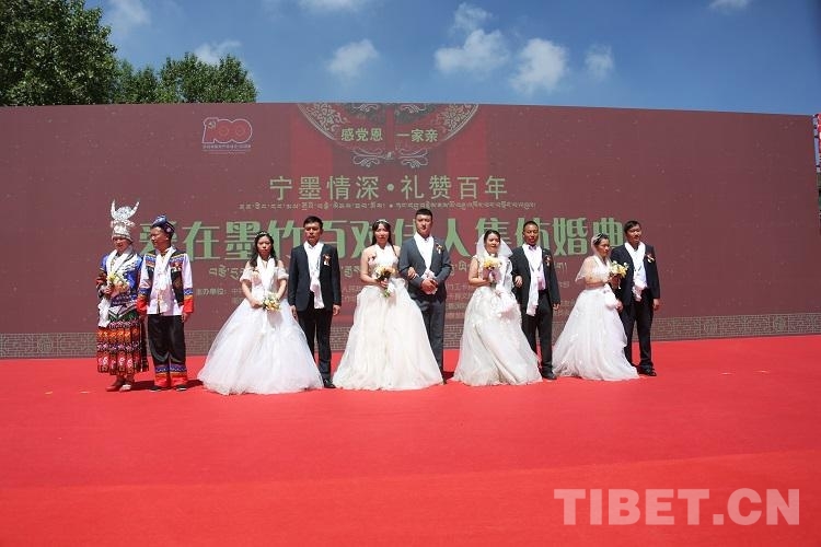 中國西藏網訊 藍天為媒、碧水為證,與黨同慶、永結同心。在中國共產黨成立100周年來臨之際,6月28日,“寧墨情深·禮贊百年”——愛在墨竹百對佳人集體婚典在西藏自治區拉薩市墨竹工卡縣甲瑪鄉松贊干布紀念館盛大舉行,百對佳人隆重集會,迎建黨百年、結百年姻緣。
