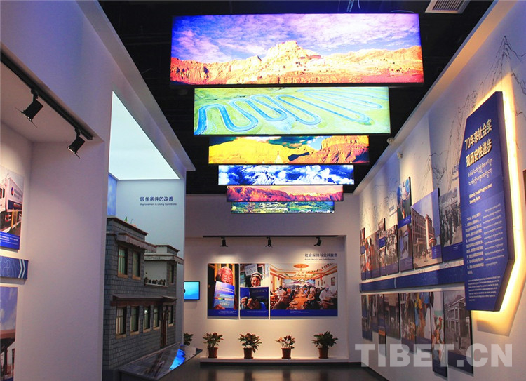 據(jù)陳宗榮介紹,“豐功偉業(yè)”展覽以西藏和平解放70年光輝歷程為主線,設計了“社會制度實現(xiàn)偉大飛躍”“新時代新飛躍”“西藏的發(fā)展進步根本在于中央的關(guān)心”等7個主題展區(qū)。展覽運用350多幅圖片、61件(套)珍貴實物和文獻,采用虛擬現(xiàn)實、多媒體互動等現(xiàn)代科技手段,利用實物模型、場景復原、幻影成像、三維模型等多種形式,集中展現(xiàn)了70年來西藏發(fā)生的歷史性轉(zhuǎn)變、取得的歷史性成就。