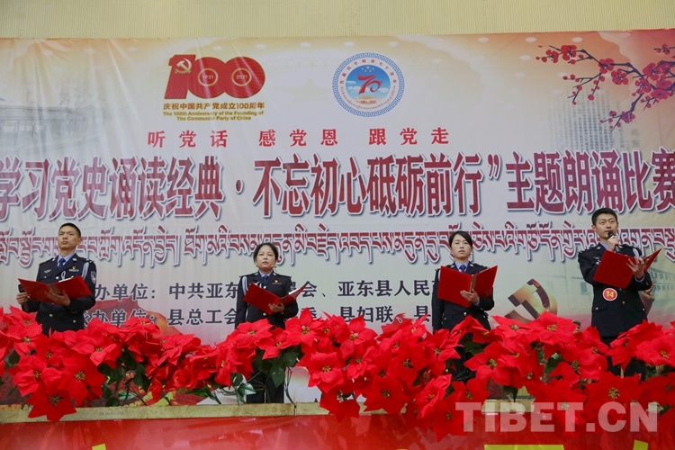 圖為西藏亞東出入境邊防檢查站參加亞東縣“學(xué)習(xí)黨史誦讀經(jīng)典、不忘初心砥礪前行”主題朗誦比賽