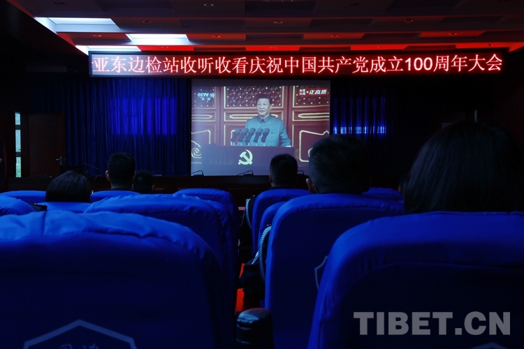 圖為西藏亞東出入境邊防檢查站組織民警觀看慶祝中國共產(chǎn)黨成立100周年大會