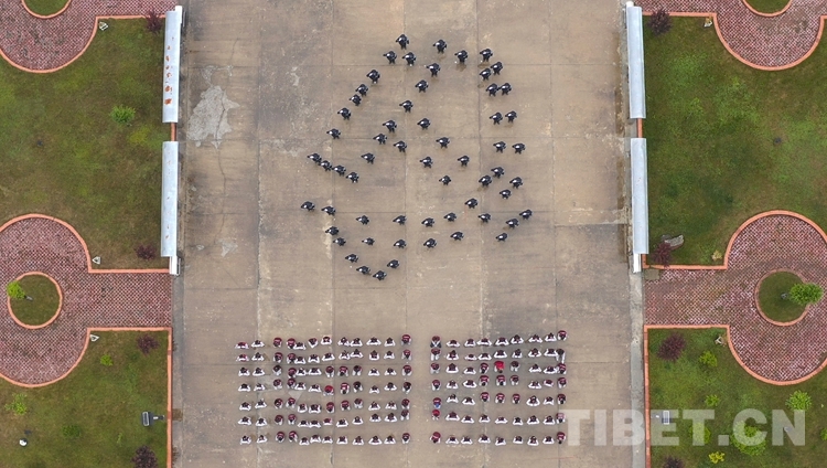 圖為西藏亞東出入境邊防檢查站組織全站民警和140余名中學(xué)生組成“黨徽下的倒計時”方陣,慶祝建黨100周年