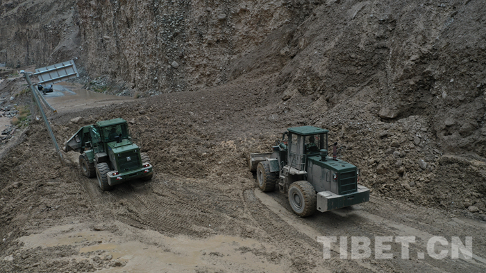圖為該支隊救援官兵正在對川藏線怒江溝泥石流災害進行搶通