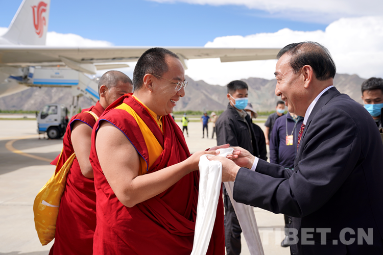 西藏自治區黨委常委、統戰部部長,區政協黨組副書記、副主席旦科等西藏自治區相關領導在貢嘎機場迎接,互敬哈達。