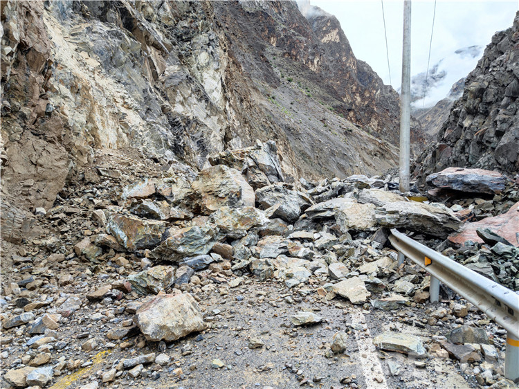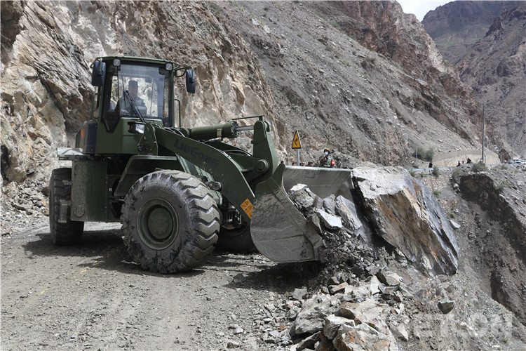 為盡快打通道路,恢復交通通行,該支隊官兵采取“雙向掘進、多點作業、先通后拓”的戰法快速對路面災害進行清理。在嘎瑪溝塌方災害點,面對垮塌下的巨石,官兵們利用多機協同作業的方式,對巨石進行了移除,有效避免了爆破對村民房屋帶來的損壞。
