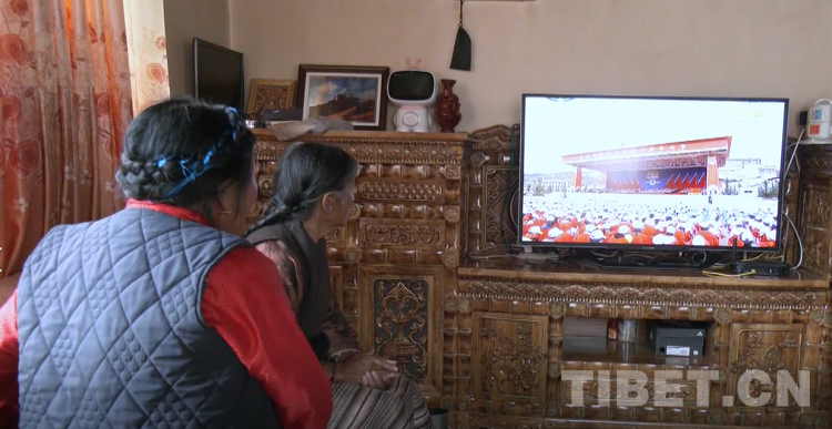 資料圖:日喀則市群眾在通過電視收看慶祝西藏和平解放70周年大會實況 來源:日喀則市廣播電視臺