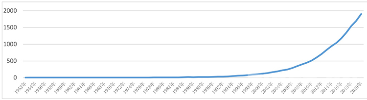 圖為1951—2021年上半年地區生產總值走勢(億元)