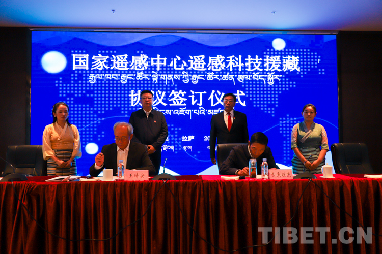 會上,科技部國家遙感中心與西藏自治區科學技術廳簽署了《關于遙感科技援藏的戰略合作協議》,并進行了國家遙感中心西藏分部授牌儀式。