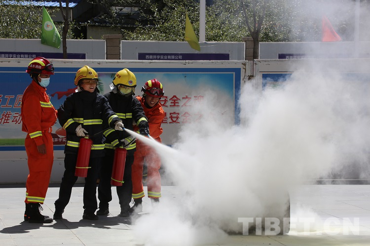 圖為拉薩邊檢站民警進行消防器材實操 攝影:王佳豪